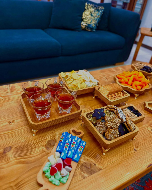 ساخته شده از چوب با کیفیت بالا و قابل شستوشو، مناسب برای اجیل، شیرینی، دسر، میوه و پذیرایی مهمان.