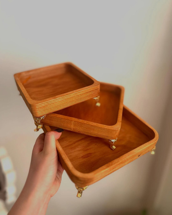 ست ۵ تکه مربع چوبی با پایه، ترکیبی از کاربردی بودن و طراحی شیک برای میز پذیرایی شما.