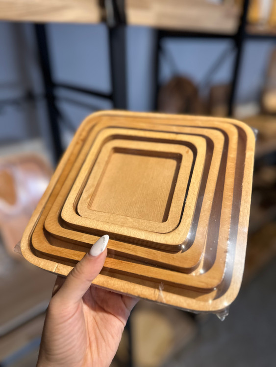• جنس: چوب با کیفیت • تعداد تکه: ۵ • شکل: مربع • قابل شستوشو: بله • کاربرد: پذیرایی، اجیل، شیرینی، دسر، هدیه • قیمت: اقتصادی و مناسب • گودی کار ۱،۷۰چوب پلای وود