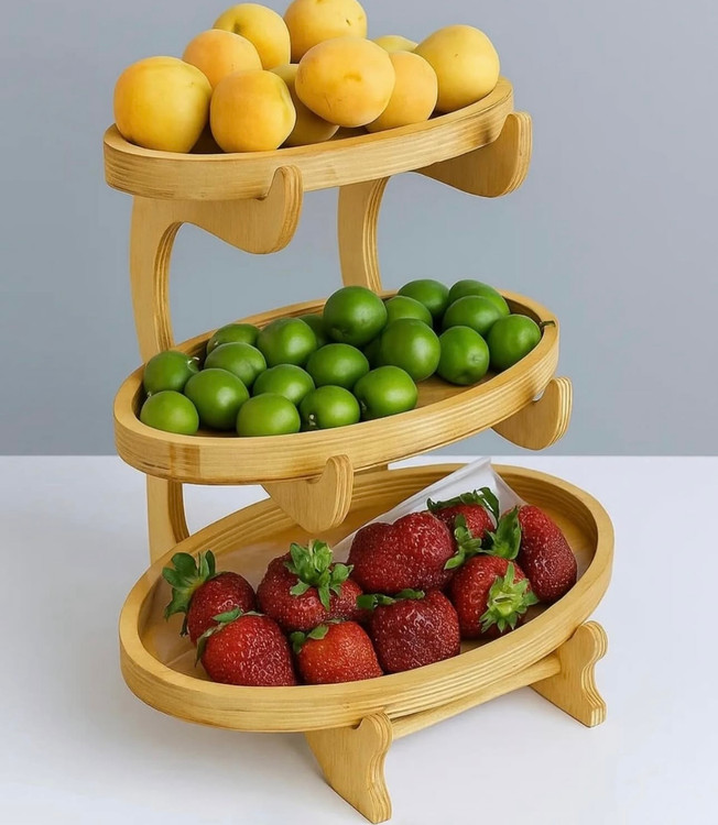 میوه و شیرینی خوری ۳ طبقه چوبی با استند | کاربردی و قابل شستوشو | لوکس و اقتصادی