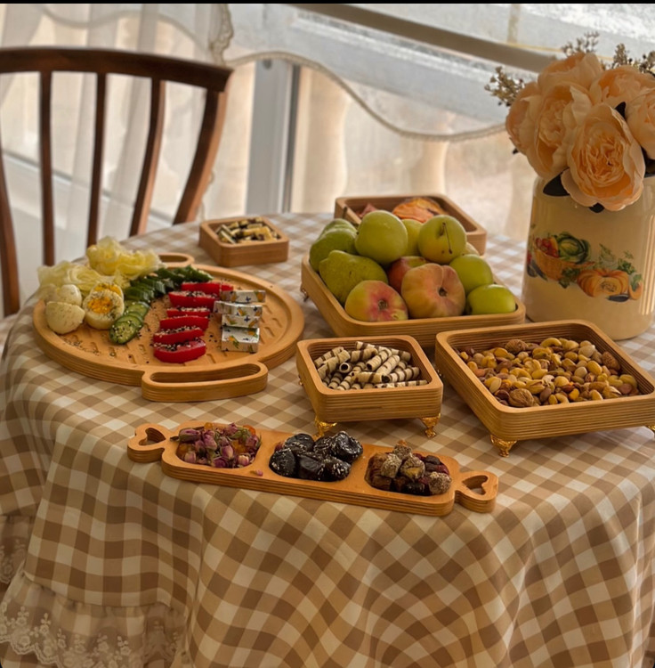 ست چوبی پایه طلایی مربع (پرفروش و اقتصادی قابل شست و شو)