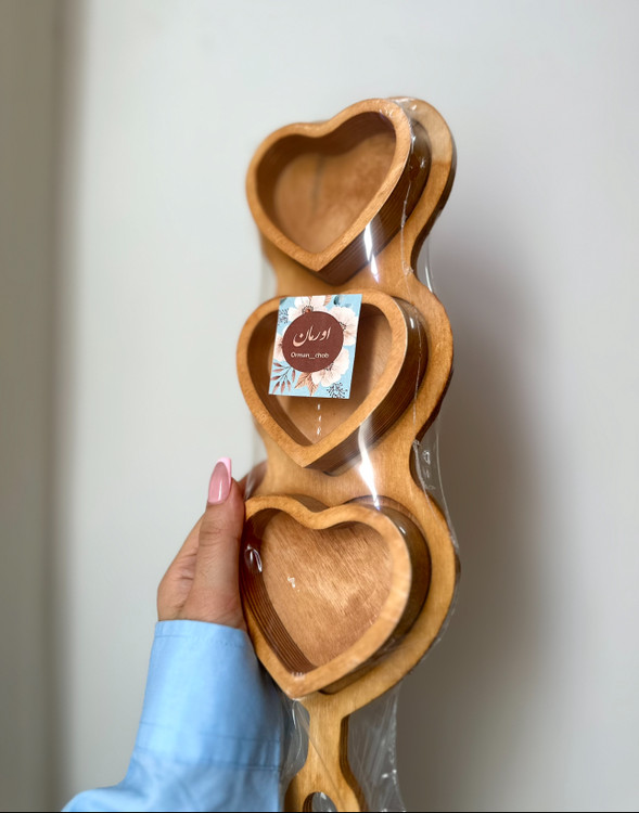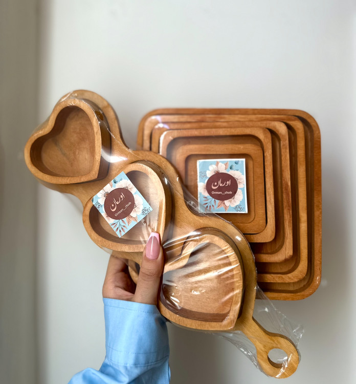 ظروف پذیرایی چوبی (ست مربع ۵عددی+اردو خوری قلبی)اقتصادی قابل شست و شو پرفروش