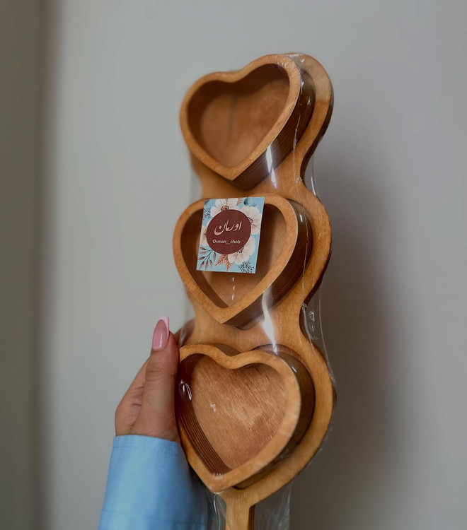 ست ۵ تکه مربع چوبی با اردو خوری راکتی طرح قلبی | اقتصادی و کاربردی | قابل شستوشو